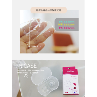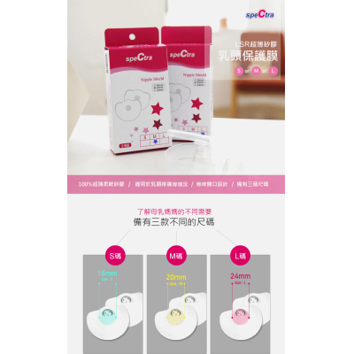 SPECTRA's new nipple protective film is suitable for breastfeeding mothers with painful, flat or sunken nipples to help them breastfeed smoothly. It is made of ultra-thin LSR liquid material, transparent, odorless, soft in texture, and does not contain bisphenol A chemicals. The unique open half-mask design allows the baby to smell the familiar scent of the mother, and allows the baby to have skin-to-skin contact with the mother, which can assist breastfeeding mothers to continue breastfeeding the baby during the period of nipple pain or wounds.