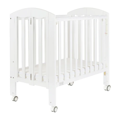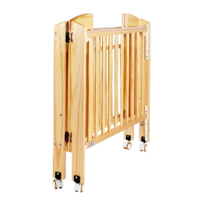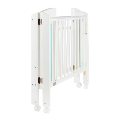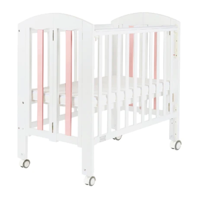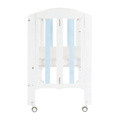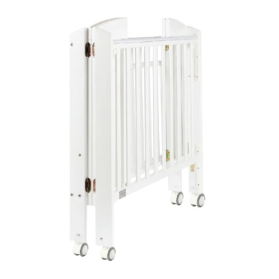 The foldable cot is made from New Zealand Pine. This is definitely a space saver for room with limited size. When not in use, simply fold it and put aside. The two mattress base heights make it a lot easier for mums to access their baby in the cot.