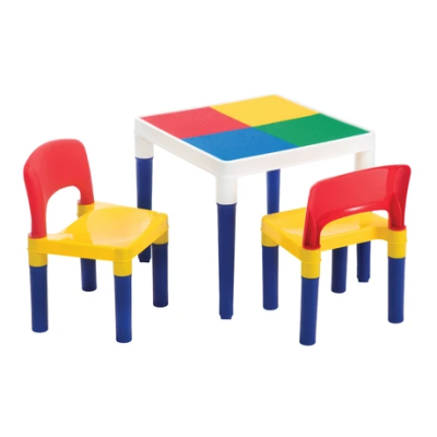 The Delsun Building Block Table and Chairs Set is made from non-toxic and Phthalates Free Plastic which are compiled with European EN71 Standard.