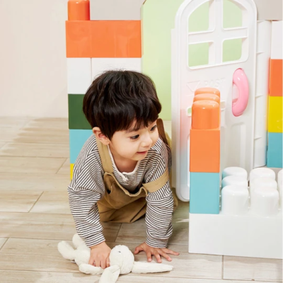 Haenim Toy 我的第一个间屋Jumbo 积木组配有门,屋顶和桌子。在这么小的年龄,您的孩子现在可以拥有自己的第一套房产。超大且联锁的块具有光滑的圆形边缘,可确保安全的游戏时间。