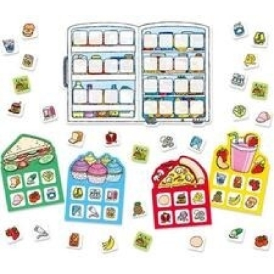 将28张食材咭翻转放在雪柜咭小格上,然后每位玩家分派1张食物咭。