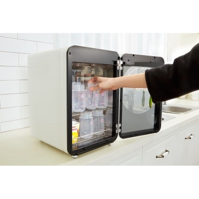 • 與消毒奶煲比較,此UV消毒機不需注水,只需把已清潔的奶瓶放入,按下按鈕即可消毒, 免卻注水及用後倒水清潔的麻煩