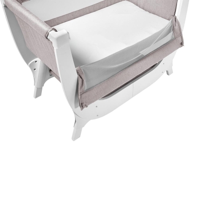 Shnuggle Air透气床边婴儿床的核心设计是其高透气度。两面透视、侧面透气网眼布有助提高最大限度的空气流通,并让您能密切关注宝宝的任何状态。优质的低过敏纤维床垫比标准泡沫床垫透气度高50%**,有助减低婴儿过热的风险。