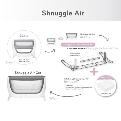Shnuggle Air是唯一由床边婴儿床转换至幼儿床的睡床系统,其时尚的外型设计和极佳的透气性,Shnuggle Air是真正呼吸新鲜空气的婴儿睡床。