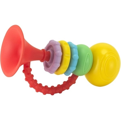 - 設計:牙膠套裝結合了牙膠的舒緩舒適和引人入勝的玩具與搖滾和牙牙吉他、啪嗒啪嗒的小號、搖晃和唱歌馬拉卡斯和 tappitty tap tap 手鼓