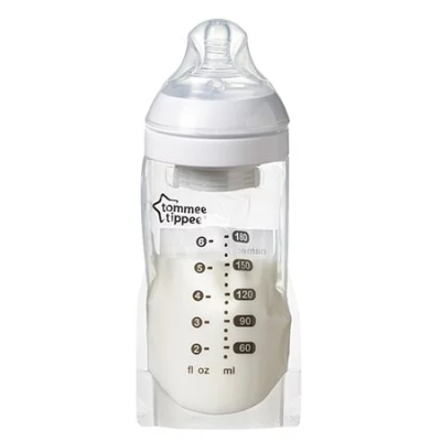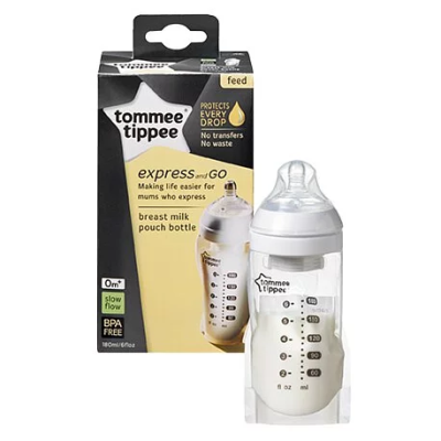 • The milk storage bag can be twisted to the breast pump and the Express & Go milk storage bag, without changing the container.