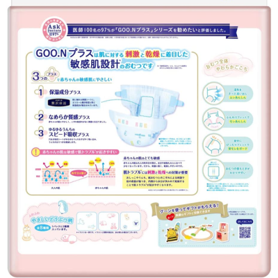 GOO.N plus专为宝宝易受刺激与干燥肌肤特別研发敏感肌设计, 敏感肌设计是指专为宝宝出生细嫩肌肤所特別设计