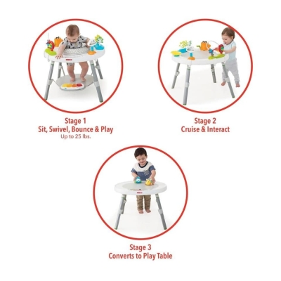 可陪伴寶寶度過 3 個成長階段,從坐立觸碰遊戲、爬行漫步遊戲、到桌邊站立遊戲;