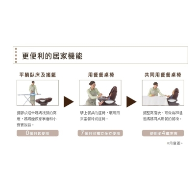 搭載新生兒保護墊標準配備機種,以柔軟舒適的材質,對新生兒及幼小嬰兒頭部、腰部、臀部有更加一層的保護。新生兒保護墊+坐墊可整片拆除洗衣機清洗,常保持座艙的清潔。座面加寬加長的寬廣型座椅※,讓寶寶有更多的活動空間。新生兒起至四歲左右適用,可配合寶寶不同的成長狀況調整,超長期使用!